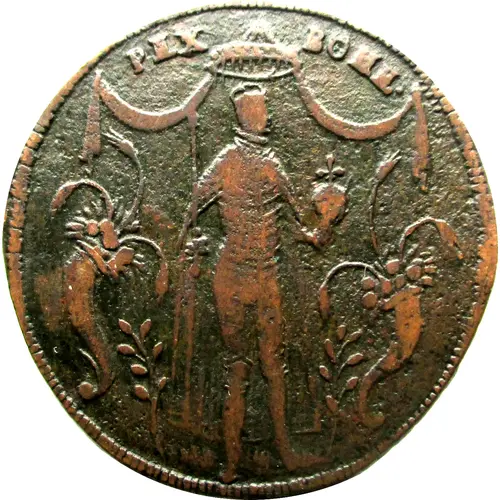 | 正面描述 | The King of Bohemia (the Emperor Rudolph II) standing in robes of state with sceptre and orb, under a baldachin canopy, and flanked by cornucopiae and laurels. |