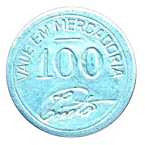 | Obverse lettering | VALE EM MERCADORIA - 100 - J.Pinto (Translation: Worth in Merchandise - 100 - J.Pinto) |