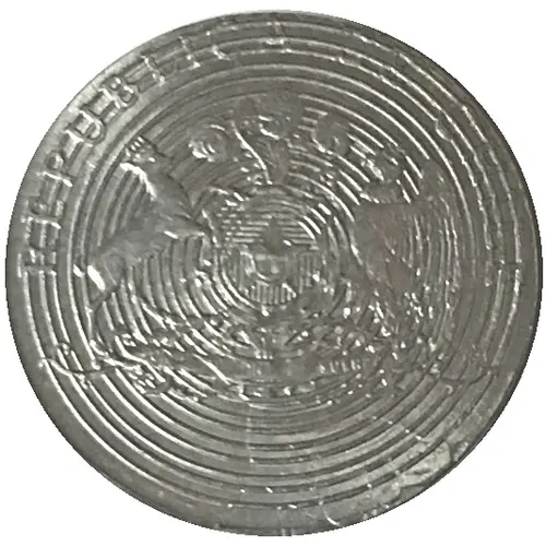 | Beschrijving voorzijde | Chilean coat of arms, country name as a curved legend on half top. Concentric circles on all background. |