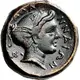 | Reversbeschreibung | Head of nymph to right, wearing triple-pendant earring and pearl necklace, and with her hair bound in a sakkos tied at the back |