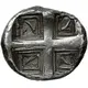| Описание реверса | Quadripartite incuse square in the form of a coffered ceiling; each coffer decorated with a dolphin and laurel spray, giving the appearance of the dolphins swimming toward the center of the die. |