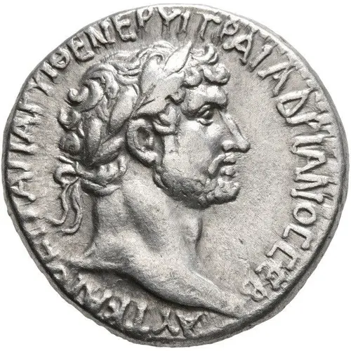 | Legenda awersu | ΑΥΤ ΚΑΙ ΘΕ ΤΡΑ ΠΑΡ ΥΙ ΘΕ ΝΕΡ ΥΙ ΤΡΑΙ ΑΔΡΙΑΝΟϹ ϹΕΒ (Translation: Imperator Caesar divi Traiani Parthicus filius divi Nervae nepos Traianus Hadrianus Augustus) |