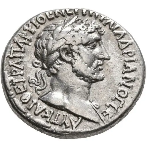 | Ön yüz açıklaması | Laureate head of Hadrian, right, with drapery on left shoulder; fillet border. |