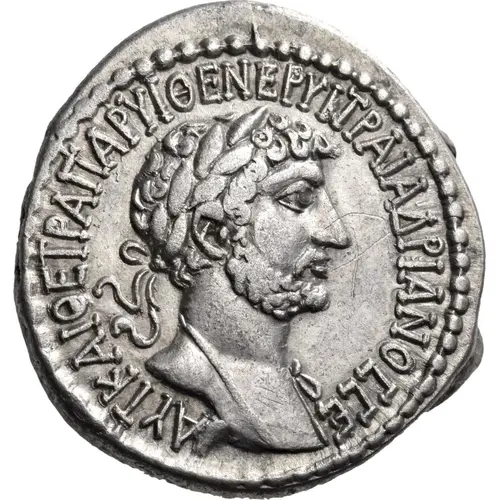 | Averslegende | ΑΥΤ ΚΑΙ ΘΕ ΤΡΑ ΠΑΡ ΥΙ ΘΕ ΝΕΡ ΥΙ ΤΡΑΙ ΑΔΡΙΑΝΟϹ ϹΕ (Translation: Imperator Caesar divi Traiani Parthicus filius divi Nervae nepos Traianus Hadrianus Augustus) |