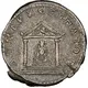 Arka yüz açıklaması Distyle temple with four steps, Corinthian columns, decorated with acroteria, eagle standing facing with wings spread in pediment, and cult statue of Artemis of Perge inside.