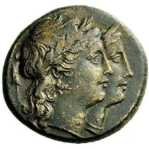 | Descripción del anverso | Jugate heads of Apollo and Artemis right. |