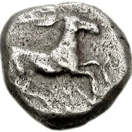 Reversbeschreibung Fish transversely right in concentric dotted and linear frames. All within incuse square