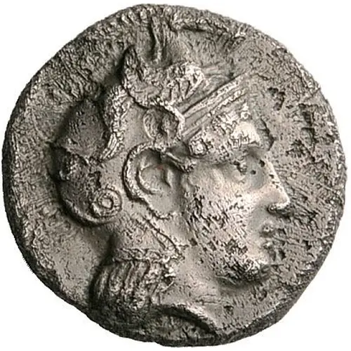| Obverse description | Head of Athena to right, wearing Attic helmet adorned with a hippocamp to right |