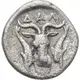 | Reverse description | Head of goat facing; dolphins swimming downwards left and right; all within incuse circle. |