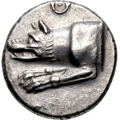 | توضیحات روی سکه | Forepart of wolf facing left. |