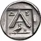| توضیحات پشت سکه | Large A; Δ-E across upper field; below, eagle standing right on harpa right; all within incuse square. |