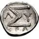 | توضیحات پشت سکه | Large Σ, magistrate’s name around and all within incuse square |