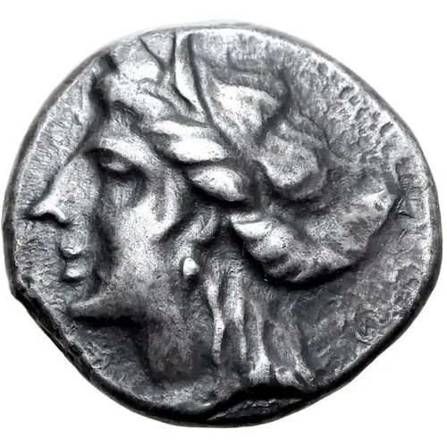| توضیحات روی سکه | Wreathed head of Demeter Chthonia to left. |