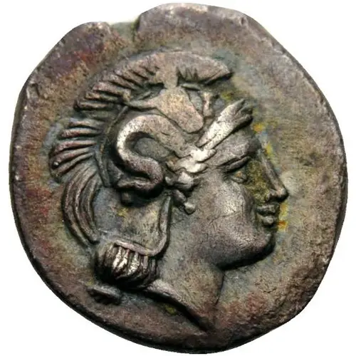 | Aversbeschreibung | Head of Athena to right in crested Attic helmet ornamented with a hippocamp |