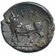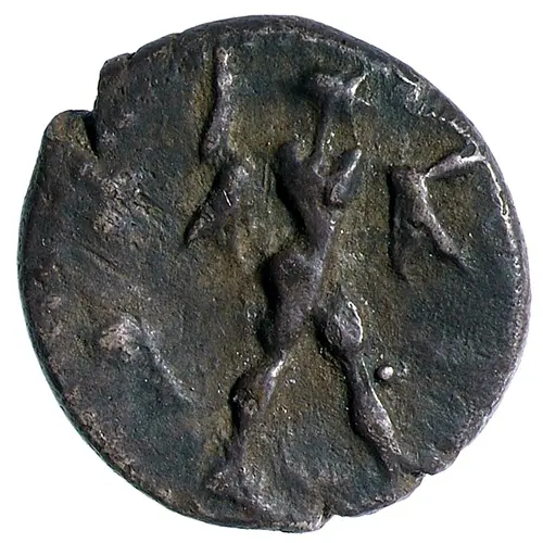 Poseidon wearing chlamys advancing right, brandishing trident.