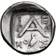 | Beschrijving keerzijde | Large A; I-E/P-Ω/NO-Σ in three lines across field; below, eagle standing right; all within incuse square. |