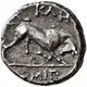 | Reversbeschreibung | Bull butting towards the right; magistrate name in the exergue. |