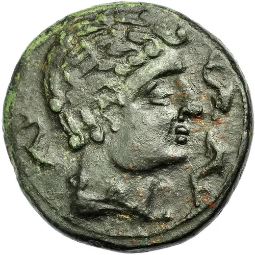 | توضیحات روی سکه | Male head with collar, facing right. Three dolphins around. |