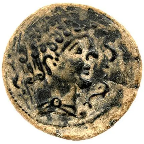 | توضیحات روی سکه | Male head with collar, facing right. Three dolphins around. |