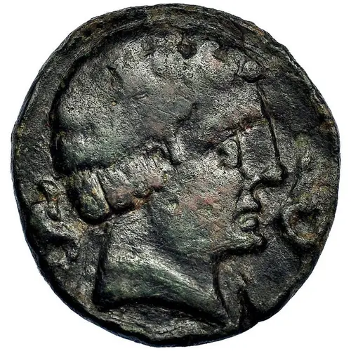 | Aversbeschreibung | Male head facing right, wearing necklace. Two dolphins in left and right fields. |