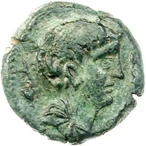 | توضیحات روی سکه | Male head with mantle facing right. Three dolphins around. |