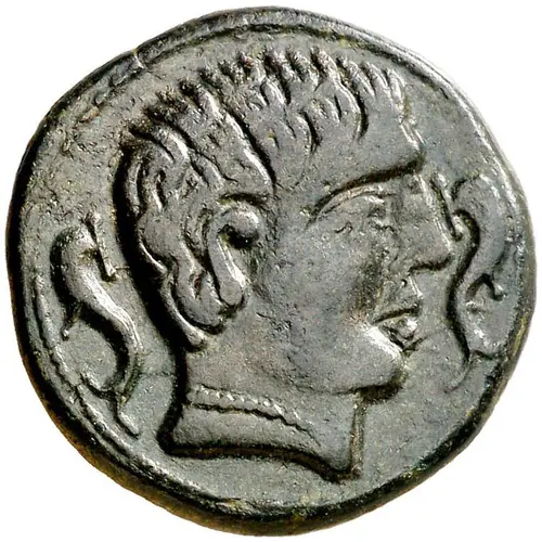| توضیحات روی سکه | Male head facing right, between two dolphins. |