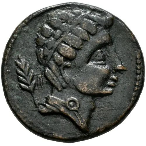 | توضیحات روی سکه | Diademed male head facing right, wearing cloak around neck with fibula. Palm leaf to the left. |