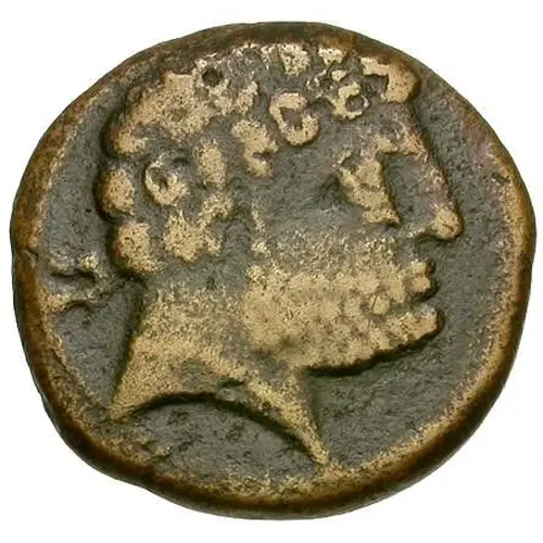 | 正面描述 | Bearded head right, Iberian letter behind. |