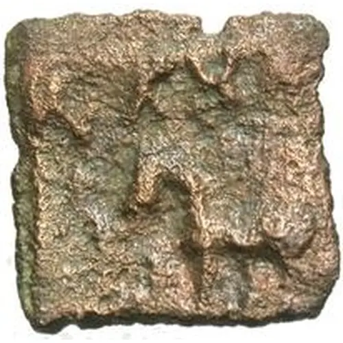 | توضیحات روی سکه | Elephant walking left with Brahmi legend above. |
