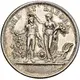 | Obverse description | Allegory of agriculture in the form of a standing woman holding a cornucopia of fruit in her left hand, crowning with laurel a winegrower standing in front of her, his head uncovered and holding a pruning hook in his right hand. To the left, vine stock and plough behind. |