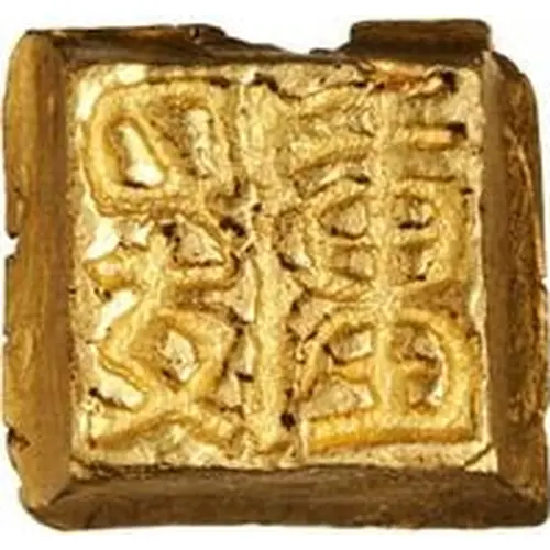 | Descrizione del dritto | Square stamps of Chinese ideograms on a sheet of gold. |