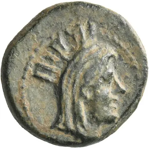 | توضیحات روی سکه | Head of Tyche right, wearing mural crown. |