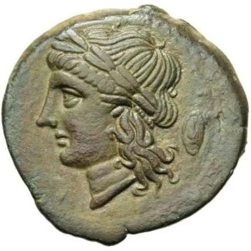 | Descrizione del dritto | Laureate head of Apollo left; at right shield, thunderbolt or variable letter. |