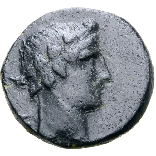 | توضیحات روی سکه | Head of young Dionysos, wearing ivy wreath, monogram behind. |