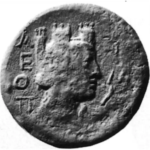 | Obverse description | Turreted head of Tyche, right. |
