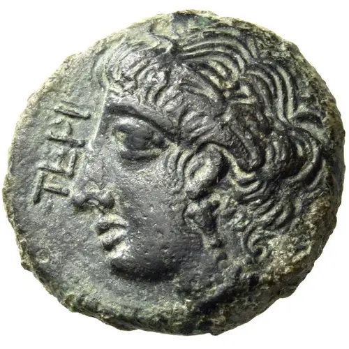 | توضیحات روی سکه | Head of Nymph to left or right, wearing reed wreath and a pendant earring. |