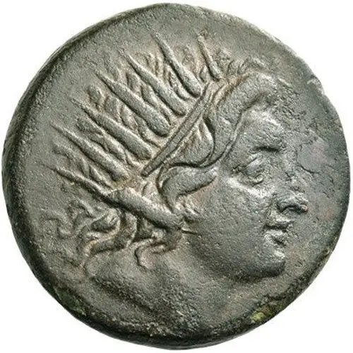 توضیحات روی سکه Radiate head of Helios right.
