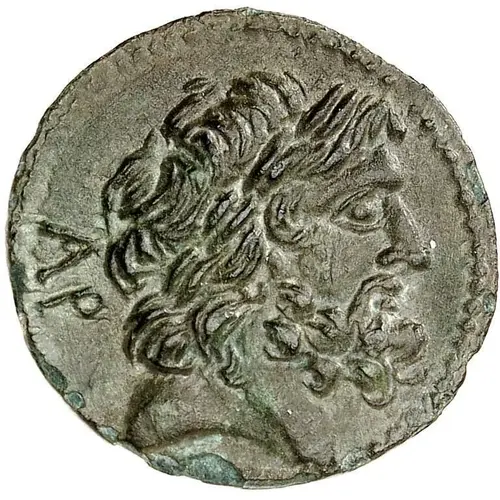 | Descripción del anverso | Head of Zeus right, wearing taenia; inscription behind. |