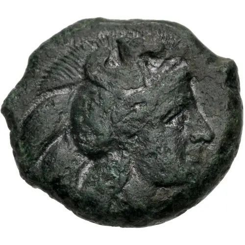 | توضیحات روی سکه | Head of Athena to right, wearing crestic Attic helmet, on bowl hippocamp |
