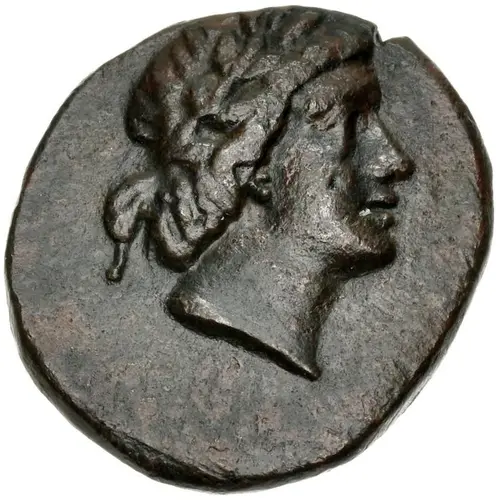 Laureate head of Apollo right.