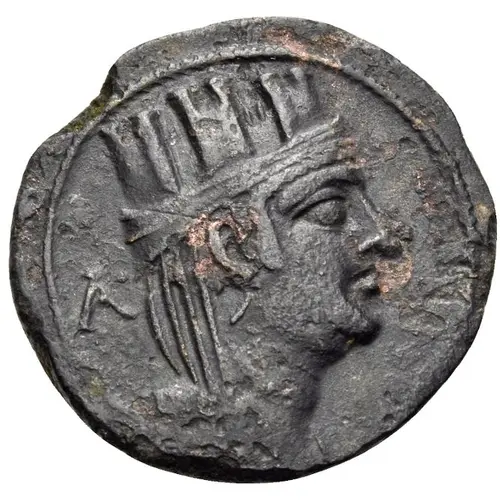 | Aversbeschreibung | Turreted and veiled head of Tyche right. Countermark: A. |