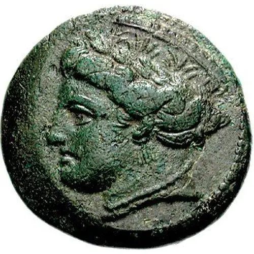 | توضیحات روی سکه | Wreathed head of Demeter left, wearing ornamented stephanos, necklace, and earring. |