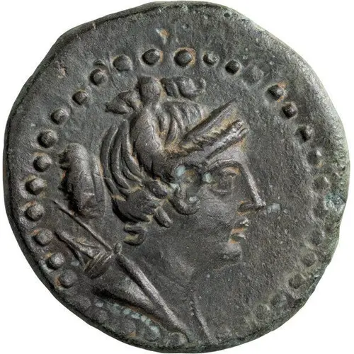 Ön yüz açıklaması Diademed, draped bust of Artemis right, with bow and quiver over her left shoulder.