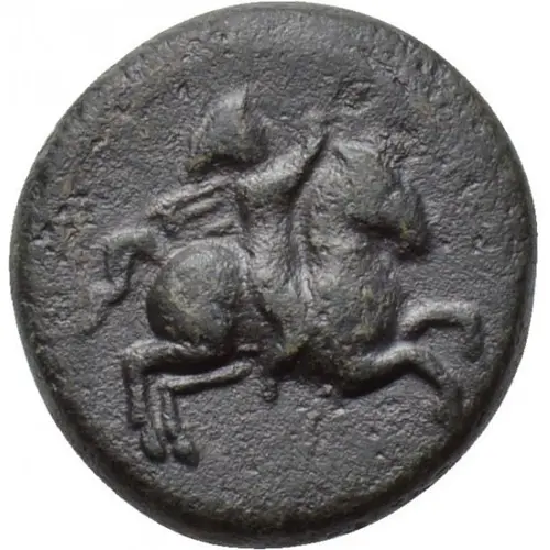 | توضیحات روی سکه | Horseman, wearing chlamys and petasos, on horse galloping right. |