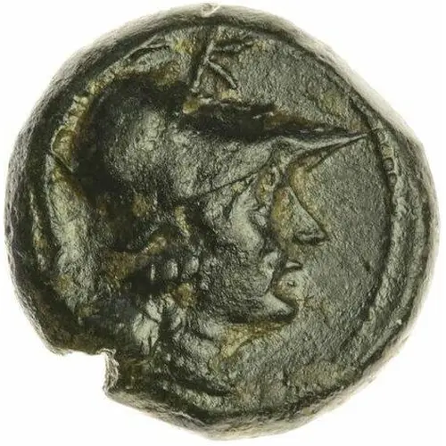 | Obverse description | Head of Athena wearing crested Corinthian helmet right; K above. |