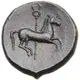 | Reverse description | Horse rearing right, long caduceus behind. |