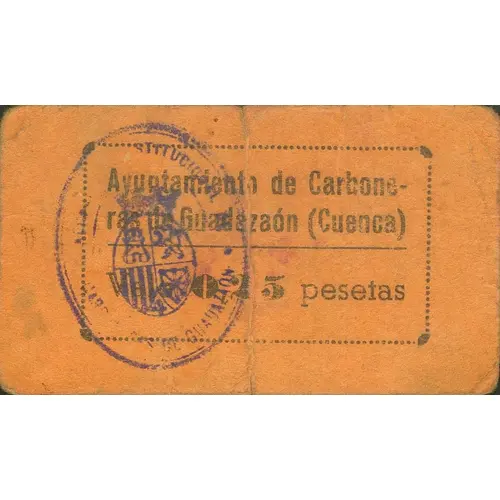 | Obverse lettering | Ayuntamiento de Carboneras de Guadazaón (Cuenca) Vale 0,25 pesetas (Translation: City Council of Carboneras de Guadazaón (Cuenca) It`s worth 0.25 Pesetas) |