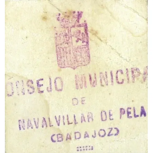 | Obverse lettering | CONSEJO MUNICIPAL DE NAVALVILLAR DE PELA (BADAJOZ) (Translation: Municipal Council of Navalvillar de Pela (Badajoz)) |