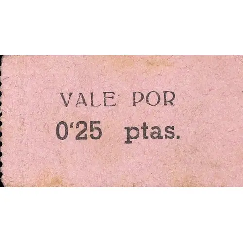 | Obverse lettering | VALE POR 0`25 ptas. (Translation: Voucher for 0.25 Pesetas) |