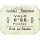 | Obverse lettering | Consejo Municipal VALE 0`25 Pesetas Real de Gandía (Translation: Municipal Council It`s worth 0.25 Pesetas Real de Gandía) |
